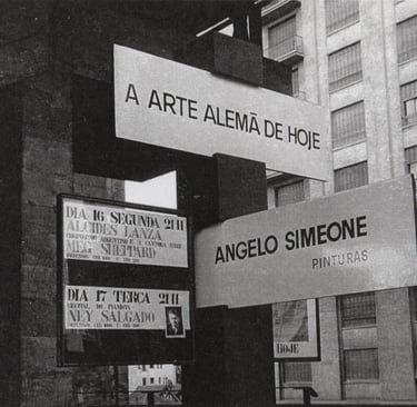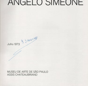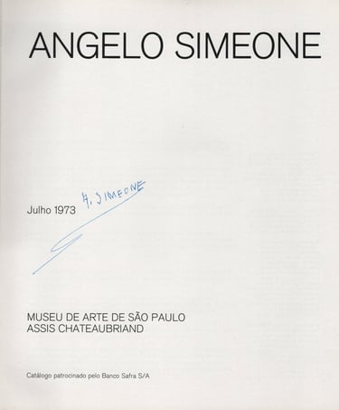Em 1973 Angelo Simeone expôs no Masp, Museu de Arte de São Paulo, a convite de Pietro Maria Bardi, diretor do museu na época, e grande admirador de Angelo. A exposição foi patrocinada pelo Banco Safra S/A