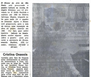 O MASP faz campanha nos jornais da época para encontrar o quadro "Leitura na Janela", em 1973